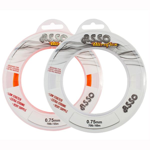 Asso UltraFlex is a soft and supple low stretch nylon which makes both a good shock leader and also rig body line. It knots really nicely and being supple means it resists coiling and tangling even in the heavier breaking strains.