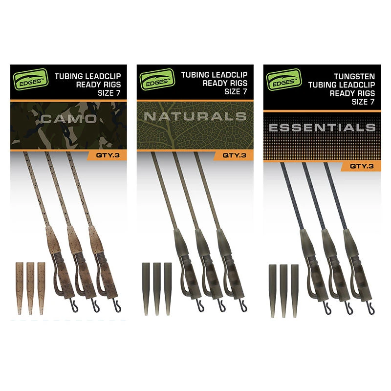 Fox Edges Tubing Leadclip Ready Rigs feature a patented tubing lead clip that securely grips and holds tubing inside the clip. Preventing tubing from sliding up the mainline like it can do with other clips, protecting fish from line damage during the fight. Unlike standard clips, tubing remains in place and does not get dragged up the line when the lead releases.