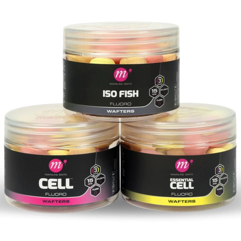Mainline Fluoro Wafters 15mm, super hi-vis hookbaits with a neutral buoyancy ideal for creating critically balanced presentations. A universal go to hook bait of choice for rigs including the popular Spinner and German Rig. Perfect for solid PVA bags or over a feed of other baits within the Mainline Dedicated range.