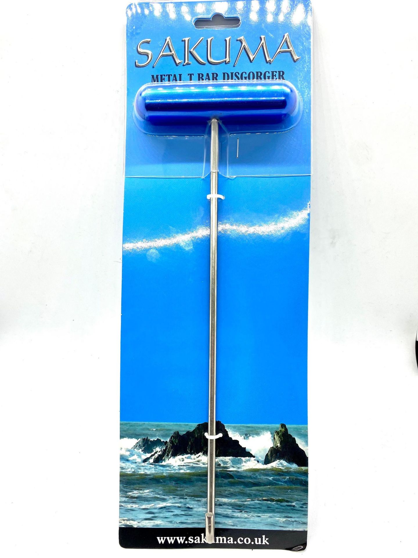 A strong, stainless-steel T-bar disgorger from Sakuma — designed to safely and easily remove sea hooks from fish, whether fishing from shore or boat.