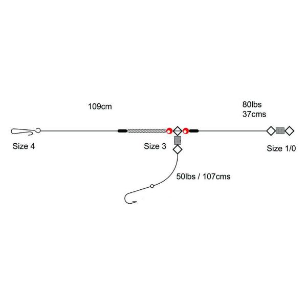 A simple, versatile rig that can be used from the boat or the shore. It is less prone to tangling due to only having one hook snood and is a favourite rig for anglers targeting flatfish, bass, cod and other predatory fish likely to be found in singles.